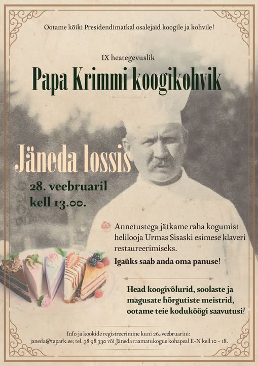 Hea matkaline, kui on soovi siis võid osaleda kas küpsetajana või lihtsalt külalisena heategevuslikus Papa Krimmi Koogikohvikus.